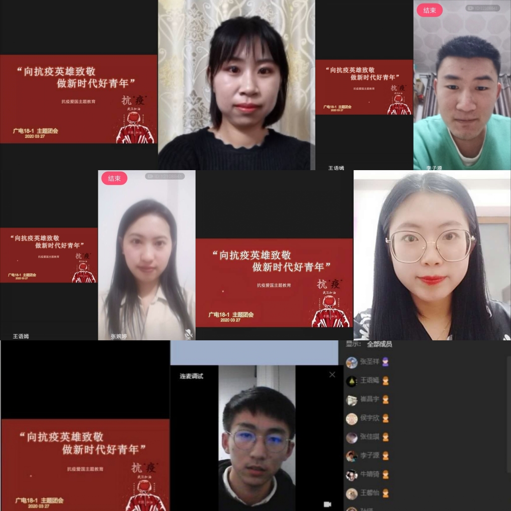 按照校团委指导意见和具体布置,2020年3月13日至2020年4月6日下午w88手机版登录官网团委组织各班团支部深入学习贯彻习近平总书记对疫情防控工作的系列重要讲话精神,认真学习了疫情防控一线的英雄典型事迹,引导共青团员听党话、跟党走。