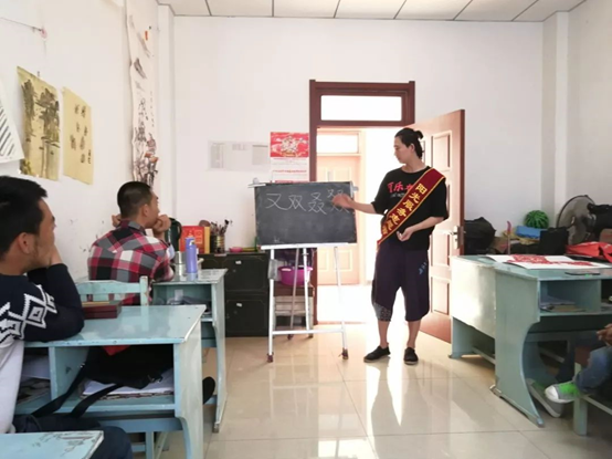 班级中员工的情况大不相同,有的与我们的志愿者年龄相仿,有的却已是古稀之年。在这群员工,最让人印象深刻的是一位70多岁的老奶奶。通过了解,我们知道这位奶奶本身并不是残疾人,而是陪着自己的儿子来学习的。母子俩每天坐公交车从清河门到市残联参加学习,这种活到老学到老,坚持不懈学习的精神让我们深受感动。在这些员工中还有一位市残联的书画家,他的名字叫王亮。在上课和交流的过程中,我们能够清晰地感受到他是一个知识渊博的人,并且作得一手好字画。不止他一个人,在我们上课教室里墙壁上,挂满了完整且精致的字画,那些字画都是由残联的员工们完成的。