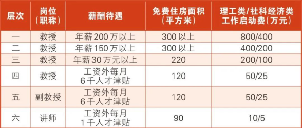 4. 其他待遇:第一层次——第三层次符合辽宁省政策者,省里一次性给予30万元至100万元奖励;第四层次至第六层次符合辽宁省政策者,省里一次性给予3万元至30万元奖励。