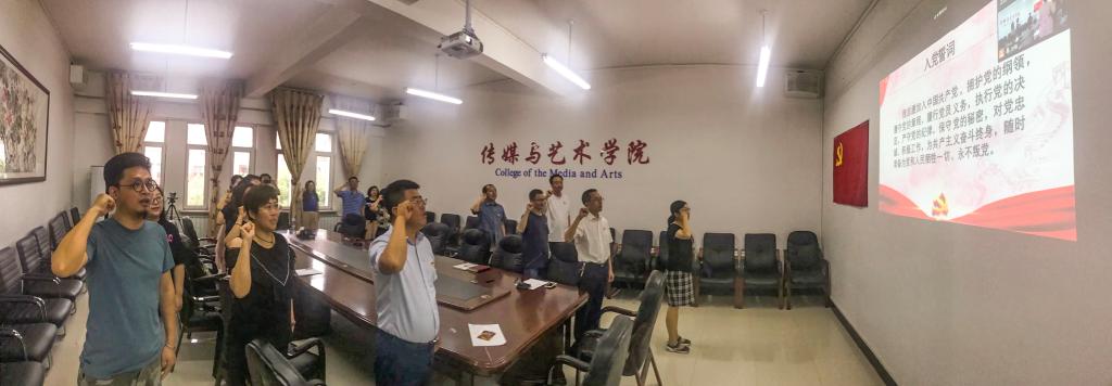 最后,全院师生党员面向鲜红的党旗,庄重地重温入党誓词。