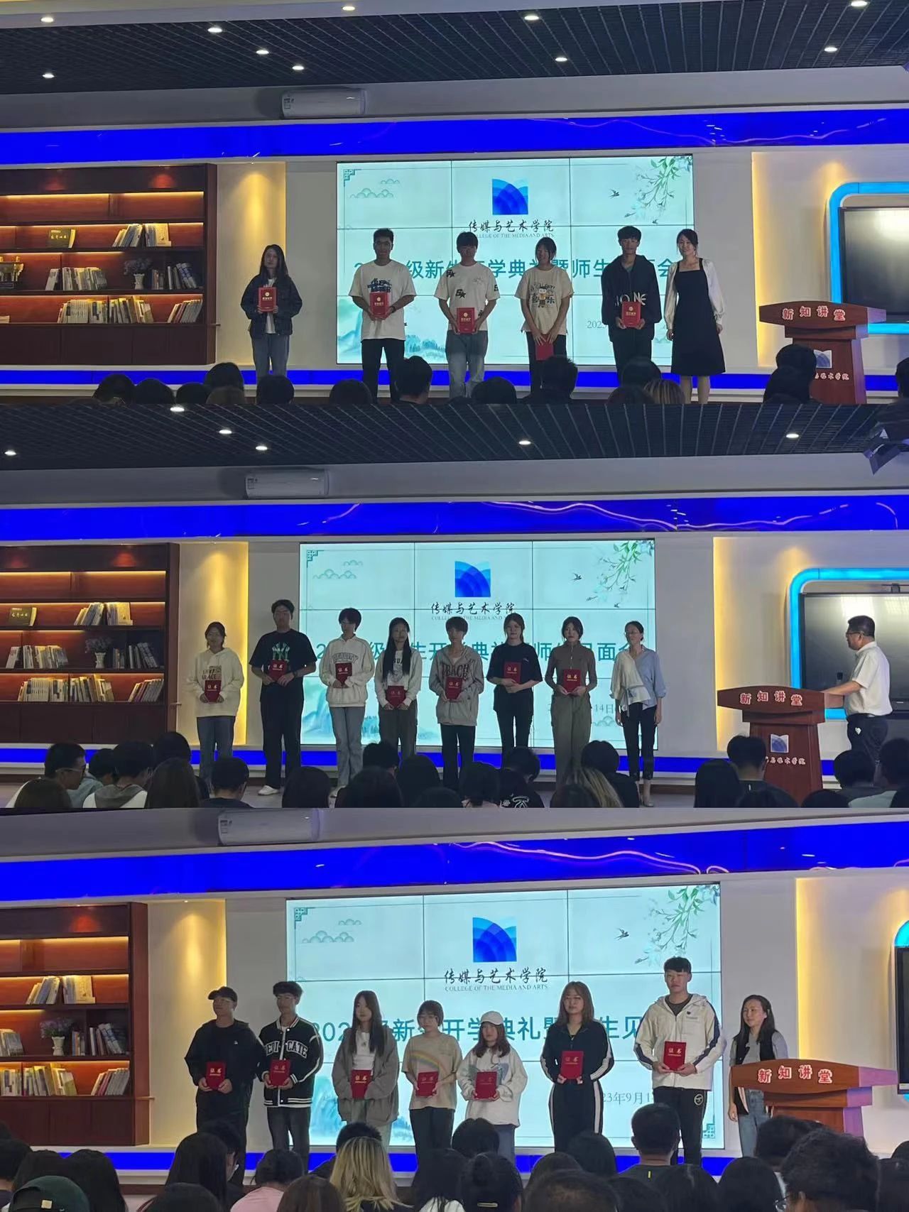 典礼上学院副经理王金红、刘麟霄和副处级组织员宋磊为获新生荣誉奖、新生军训优秀学员的同学颁发证书。