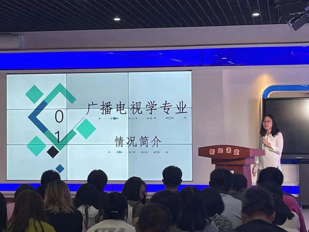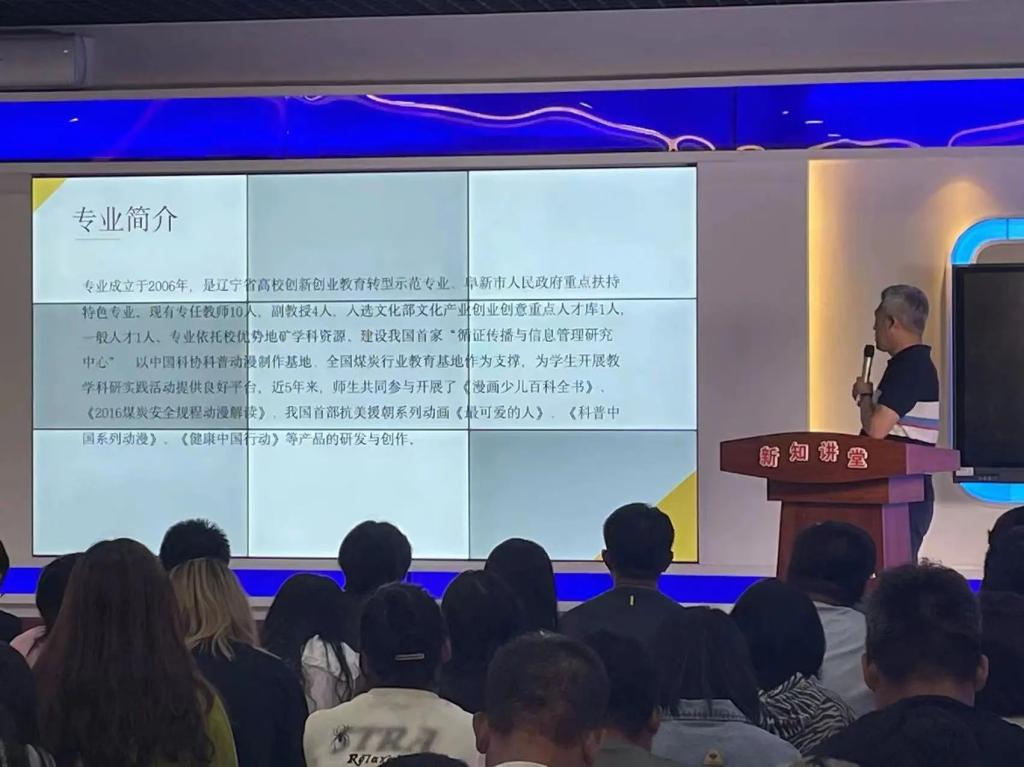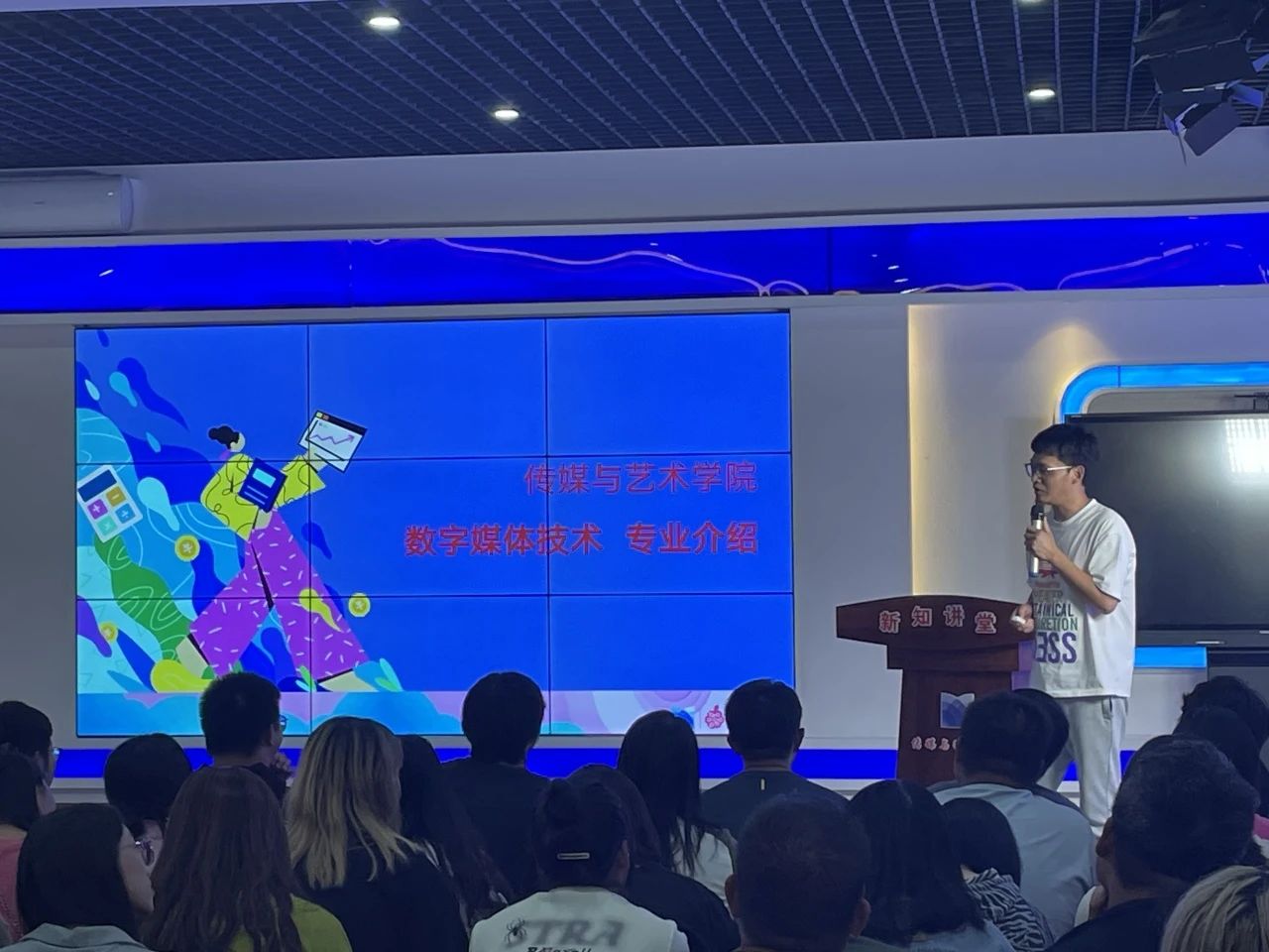 在院系风采展示部分,广电专业亓晶老师、动画专业冯一峰老师、数媒专业陈勇华老师分别对专业建设、任课教师等情况进行了系统介绍,让广大新生高效率地了解各专业的办学特色和特点。最后,公司党委书记陈永华对全体新同学提出殷切希望,希望大家把握新起点,奋进新征程,从心出发,实现梦想。