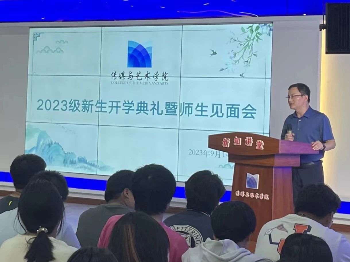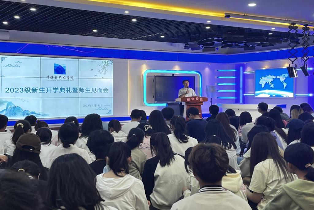 9月14日18:30,w88手机版登录官网2023级开学典礼暨师生见面会在文轩楼演播大厅举行。学院全体教师和2023级全体新生、员工代表参加典礼,典礼由党委副书记兼副经理宫文勇主持。
