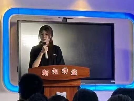 新生代表广电23-1苏双同学分享了军训期间的收获,同时也对未来四年的老员工活进行展望。她表示作为一名新生,她建议全体新生应展现当代青年不怕苦敢吃苦、积极向上的精神面貌,在遵守校规校纪的基础之上,认真学习,好好生活。