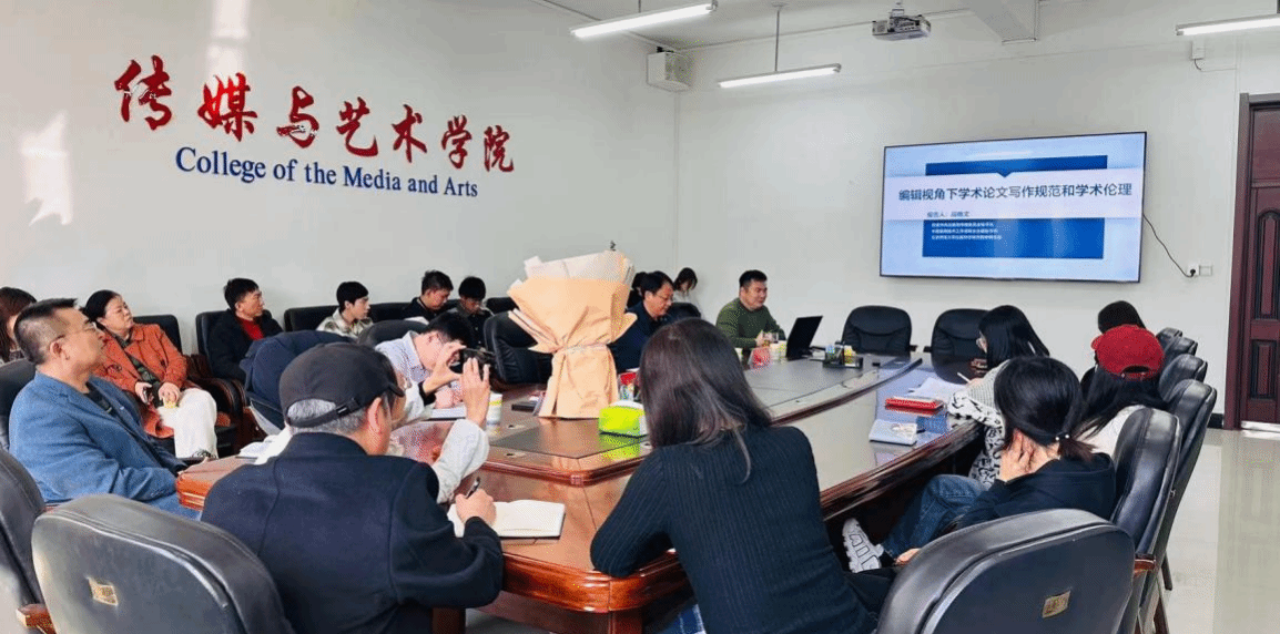 仪式结束后,段艳文秘书长作专题讲座。他结合25年的编辑工作经验,细致解读核心期刊认定、学术论文写作规范、学术伦理规范等三方面内容,并立足期刊编辑视角,分享了学术论文写作投稿的基本经验及注意事项。讲座内容深入浅出,既有理论阐述,又有实例分析,让在场的师生受益匪浅。
