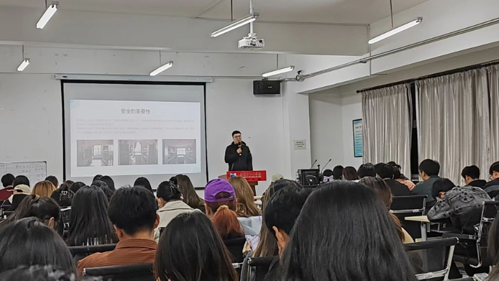 讲座中,李济羽老师系统阐述宿舍安全、交通安全和人身安全等的重要性,强调这些问题不仅关系到员工的生命财产安全,还是营造舒适、安全的校园学习生活环境的关键。他列举了人走未断电不锁门、使用违章电器、室内吸烟等老员工宿舍普遍存在问题中隐藏的巨大安全隐患,并对宿舍生活的各个方面提出的明确要求与期望: