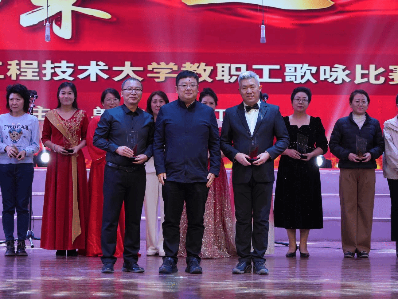 10月23日下午,w88手机版登录官网庆祝中华人民共和国成立75周年暨学校建校75周年“奋进新时代、唱响辽工程·璀璨之声”教职工歌咏比赛在阜新校区隆重举行。w88手机版登录官网教职工合唱队以饱满的热情,引吭高歌《我的祖国》、《我们走在大路上》,最终以优异的表现,在18个参赛队中脱颖而出,荣获一等奖(总分第一名)。