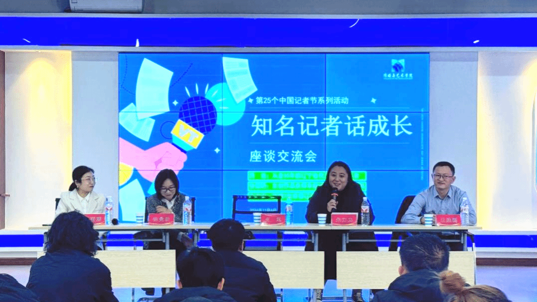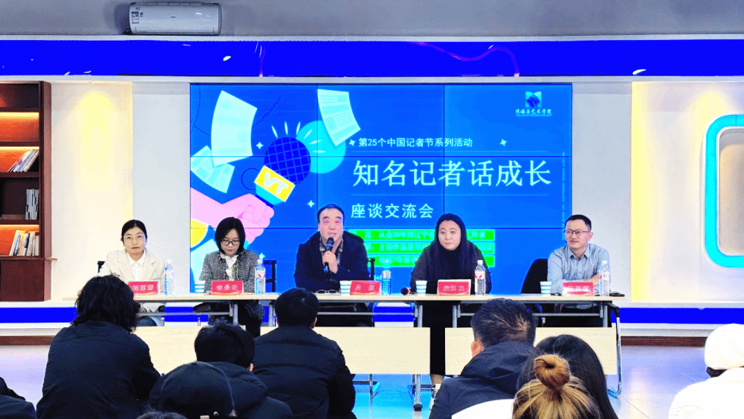 11月6日下午,在第25个中国记者节到来之际,学院在北校区文轩楼411演播大厅举办“知名记者话成长”座谈交流活动。活动特别邀请了阜新市传媒中心(集团)原副总编辑吕运、电视新闻部副部长徐曼昕及宋力力三位资深记者到场分享。活动由学院副经理程丽娜主持,经理王胜源及广播电视学专业一百多名员工参加活动。